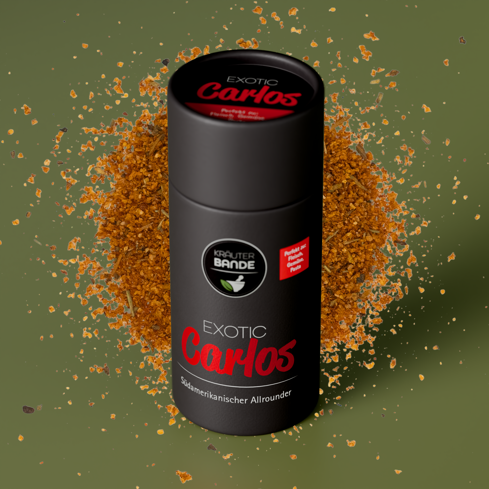 Paprika edelsüß, Tomatenpulver, Zwiebeln, Koriander, Senfmehl, Bergkernsalz, Knoblauch, Pfeffer, Thymian, Chili, Kümmel, Sellerieblätter, Kreuzkümmel